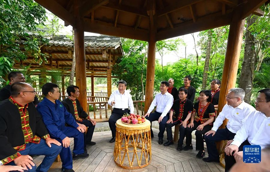2022年4月10日至13日,习近平在海南考察。这是11日下午,习近平在五指山市水满乡毛纳村,同当地干部群众亲切交谈。新华社记者 李学仁 摄