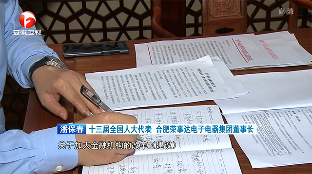5月17日,安徽新闻联播以“全国两会代表委员风采”为主题,专题报道了在皖全国人大代表、合肥荣事达电子电器集团有限公司董事长潘保春的履职故事。