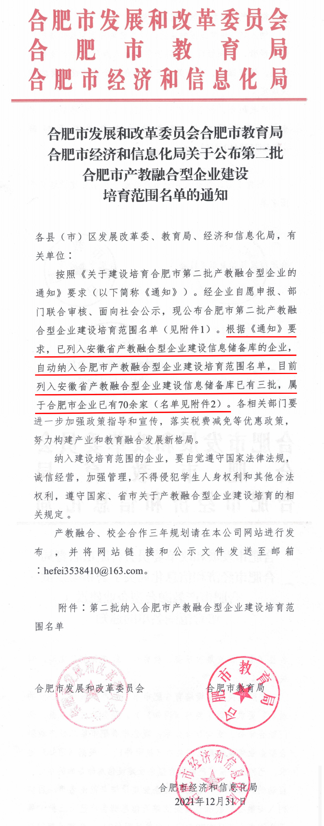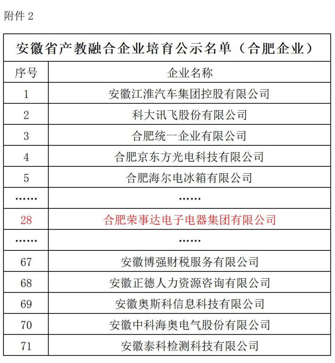日前,合肥市发展和改革委员会、合肥市教育局、合肥市经济和信息化局联合公布了《第二批合肥市产教融合型企业建设培育范围名单”》。文件指出:已列入安徽省产教融合型企业建设信息储备库的企业,自动纳入合肥市产教融合型企业建设培育范围名单,目前列入安徽省产教融合型企业建设信息储备库已有三批,属于合肥市企业已有70余家,其中荣事达集团榜上有名。