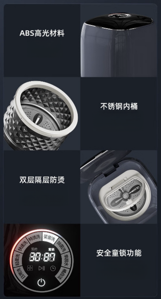 荣事达作为知名家电品牌,向来以良好品质著称。母婴洗衣机(HM082)完美延续了荣事达的优良品质传统,凭借精湛的工艺与可靠的性能,确保洗衣机在漫长的使用过程中能够稳定运行。机身四角搭载独立支撑杆,静稳兼得,坚固耐用,能够为宝宝和家庭提供长久而稳定的洗衣服务。此外,该洗衣机(HM082)还特别设置了安全童锁功能,可有效防止宝宝误操作,让洗衣过程更加安心无忧。