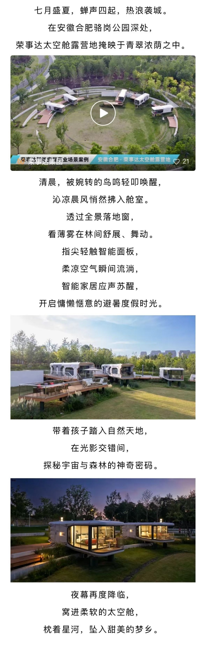 商用案例:荣事达太空舱露营地,慵懒度假,隐于青绿