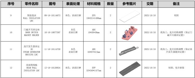 1.项目名称:衣物护理机新增零部件手板件制作