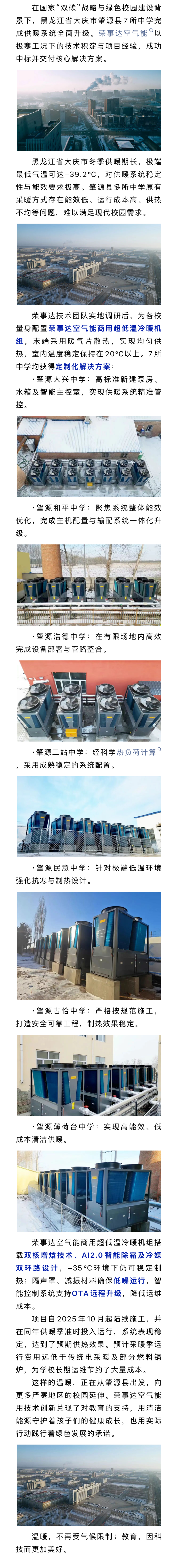 温暖校园,绿色守护 | 荣事达空气能60000㎡项目落地黑龙江大庆