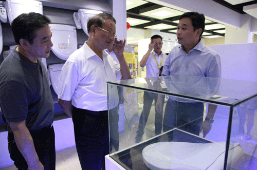 在荣事达智能家居全价值链双创中心产品展厅,调研组成员面对功能齐全、分工明细的智能家居系列产品,不禁连连赞叹。当得知荣事达智能马桶盖生产线为全球100多个品牌提供代工服务说,王启敏秘书长说:了不起!我们的产品早已走向了国外,这是民族的骄傲。当了解到荣事达空气能热泵冷暖一体机,用电量只相当于其它同类产品的1/4时,他兴奋地说:很好!现在办公室、饭店用得多,既节能又环保,下次我家要装修就买它。