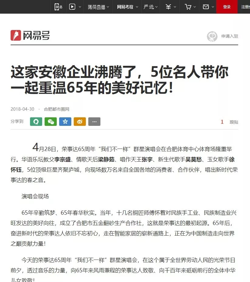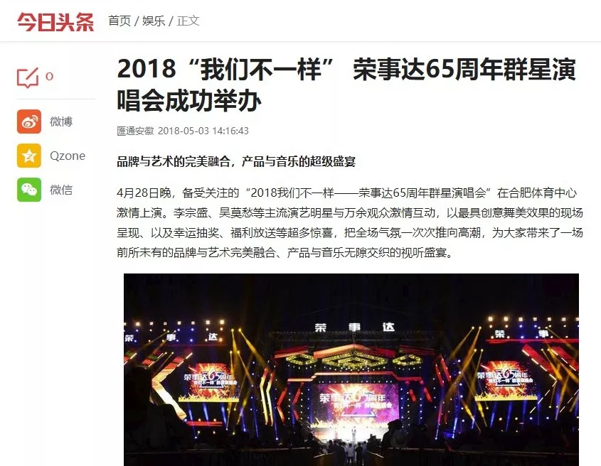 中国新闻网、腾讯新闻、网易新闻、搜狐新闻、凤凰新闻、华声在线、一点资讯、今日头条、安徽网、安徽经济网等众多媒体争相报道本次演唱会盛况。一个始终将中国制造业振兴视为己任的大企业风采,再度呈现在国人面前。