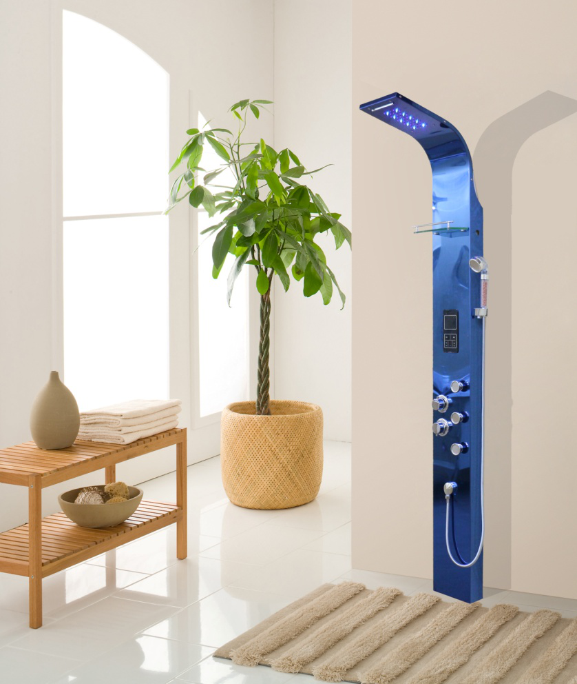 产品优势: 不锈钢黄金比例精制 麦克风SPA手持增压花洒 全铜镜面电镀阀门 LED电容触摸屏 水温在35°-55°之间随意调节 负离子净化空气 产品名称 电容触摸淋浴屏 产品型号 8523D 装箱数量 1套 规格尺寸 主体:2000x220