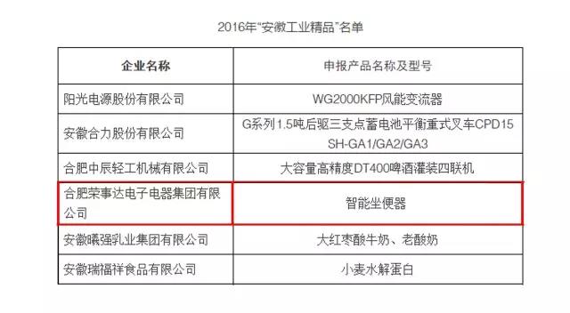 热烈祝贺荣事达智能坐便器被评为安徽工业精品! |