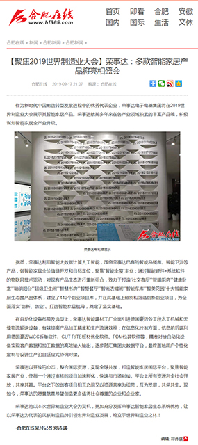 9月17日,合肥在线专题报道荣事达电子电器集团,并表示:荣事达充分发挥智能家居生态系统优势,让以荣事达为代表的民族制造品牌引领世界制造业发展,屹立于世界制造业之林!