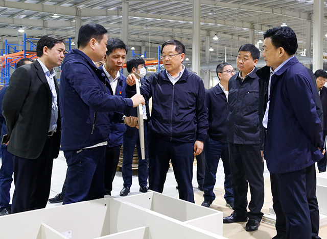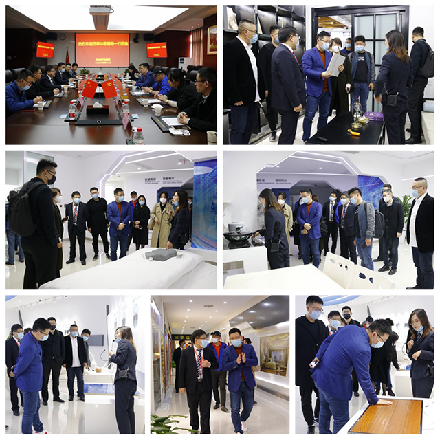 宋恩君董事长一行在集团董事长潘保春的陪同下,实地考察了荣事达双创中心、产品展厅及生产车间。参观中,宋恩君董事长一行对荣事达双创运营模式、进出口贸易情况,以及在智能家居、定制家居方面的有效成果等有了进一步了解。