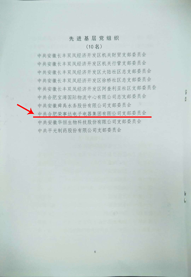未来,荣事达电子电器集团党支部将以“先进基层党组织”荣誉为激励,在今后的党务工作中发挥基层党支部先锋模范作用,积极创新基层党建模式,努力推动公司又好又快的发展,为实现双凤经开区高质量发展奋斗!