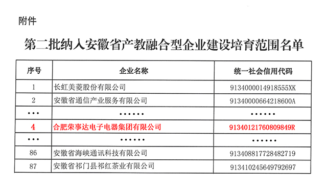日前,安徽省发展和改革委员会、安徽省教育厅、安徽省人力资源社会保障厅联合公布了“第二批安徽省产教融合型企业建设培育范围名单”。合肥荣事达电子电器集团有限公司榜上有名。此项荣誉是荣事达电子电器集团继获评首批全国职业教育教师企业实践基地后,再次在产教融合方面得到的官方认可。