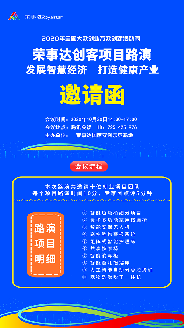 接下来,荣事达电子电器集团将于10月20日,举行云端创客项目路演活动。期间不同领域的创业者将纷纷聚集,展示其最新创新创业项目成果,专业指导老师也将和大家一起共话青年双创美好蓝图,以期进一步带动青年的双创激情,从而释放双创示范企业“双创”动能。