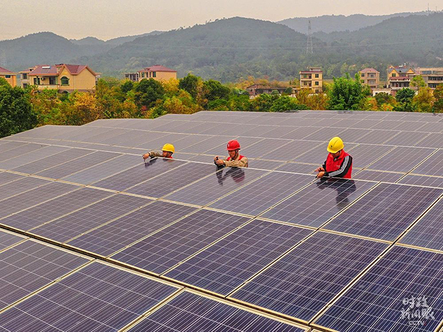 △江西吉安黄岗村,供电公司工人正在检修“光伏+取暖”设备,保障村民温暖过冬。