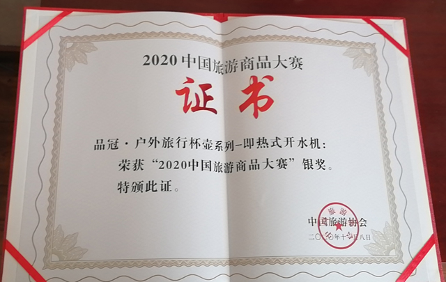 11月8日,由中国旅游协会主办,中国旅游协会旅游商品与装备分会承办的2020中国旅游商品大赛在浙江义乌举行。合肥荣事达电子电器集团有限公司选送的户外旅行杯壶系列——即热式开水机在全国参赛作品中脱颖而出,斩获大赛银奖。