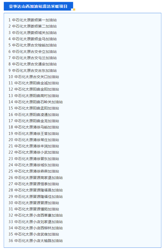 荣事达在山西地区的36个加油站项目
