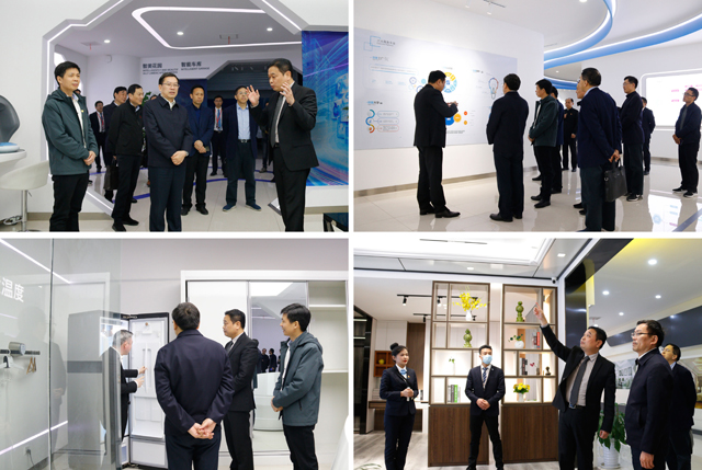 在集团董事长潘保春的陪同下,刘惠书记一行先后深入荣事达智能家居全价值链双创中心展厅以及荣事达党建活动中心。在调研过程中,潘保春董事长向刘惠书记汇报了荣事达十三五期间在发展战略、创新机制建设以及党建等工作上取得的成果。潘保春董事长表示,在“党建引领双创、双创驱动发展”行动纲领的指导下,荣事达最终形成以党建引领为核心的文化体系、以机制创新驱动为核心的创新体系、以数据驱动为核心的产业体系,立足“双创”,在智能家居方向取得了切实有效的成果,并获得了15项国家级荣誉。