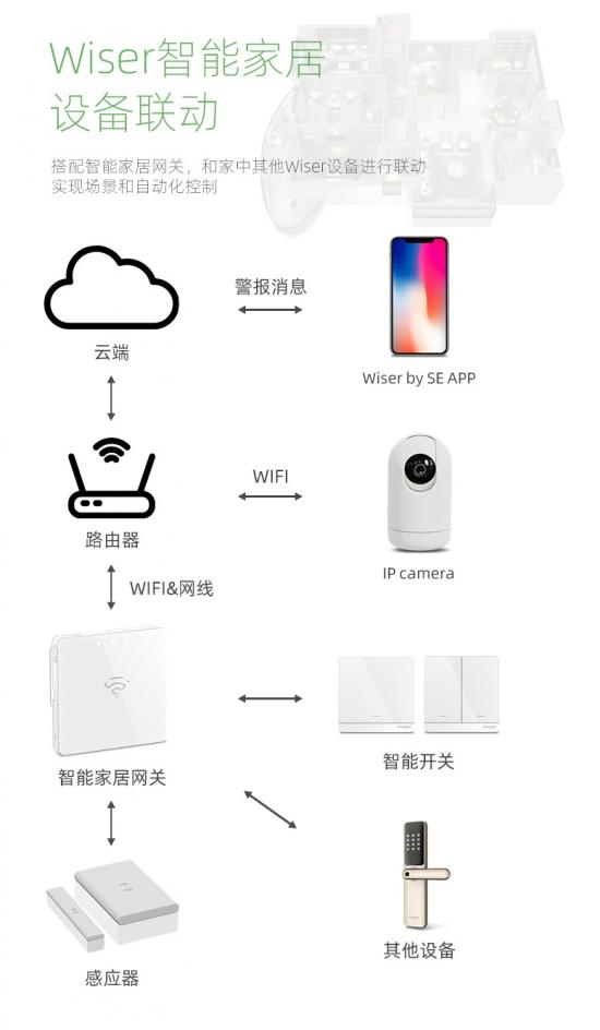 作为代表智能摄像头就是如此,相比华为的HiLink、小米的智能家居生态链,他们虽然都具备远程操控的能力,但最大的缺陷就是“看不见”,你只能在手机上了解设备有没有被开启,实际情况反馈并不清楚。有了智能摄像头的融入,可视化操控得以实现,如施耐德电气的智能云台摄像头就支持与其Wiser智能家居系统能够实现全屋互联互通。当有不法分子非法通过安装了施耐德电气智能人体传感器的窗户或阳台,手机APP不仅可以立刻向你发送报警信息,同时也将自动触发家中的智能云台摄像头自动打开巡航模式,从而最大程度保障家居安全。用户通过APP就能在远程看见并操控家里的智能家居,不止“连接”更要“联动”。
