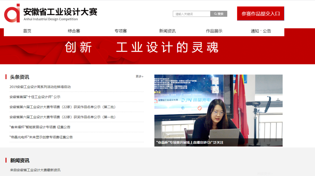 本届赛事设置了综合赛、专项赛两大板块,将运用实物、图片、文字、视频等各种形式,充分展现安徽设计的特色和竞争力。其中,大赛综合赛设置“金奖”10个、“优秀奖”200个,参赛产品涵盖“设置装备机械、汽车、家用电器、电子信息产品、办公休闲与家居纺织用品、儿童(特殊人群)与医疗保健用品、工艺品、产品包装”等众多门类。