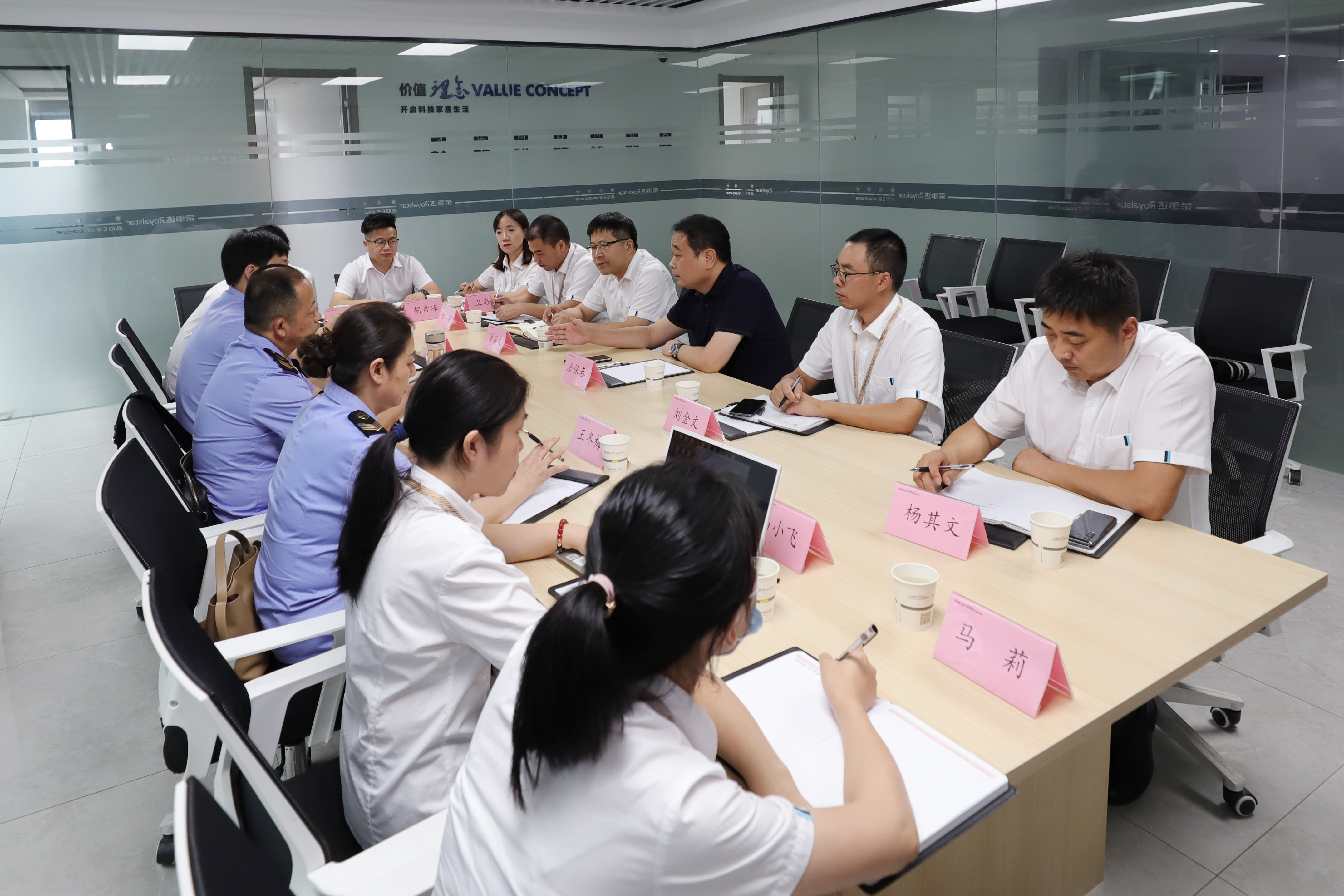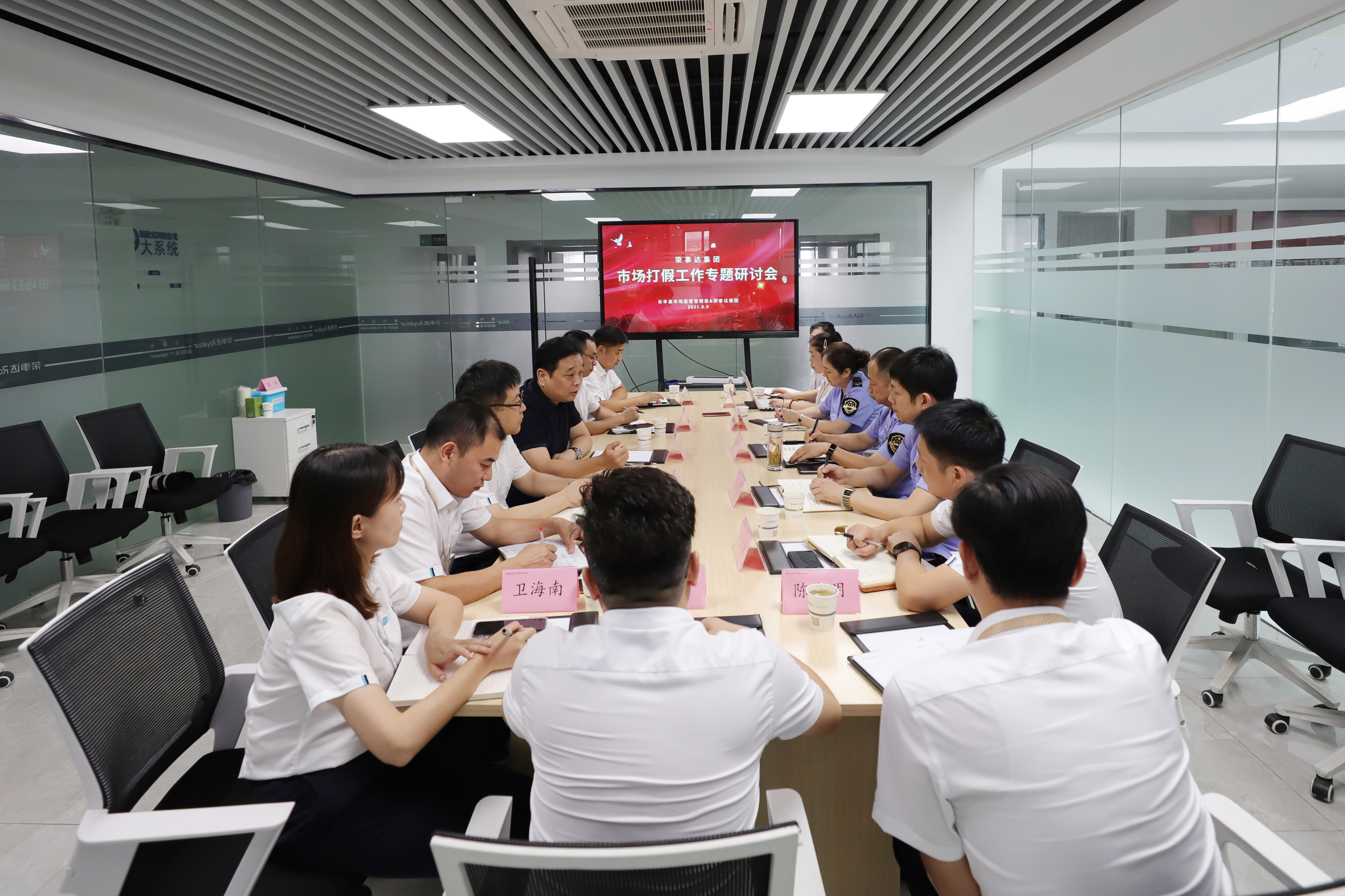 为促进荣事达品牌的持续健康发展,8月9日,荣事达集团市场打假工作专题研讨会在荣事达双创大学召开。长丰县双凤市场监督所所长李广水、书记樊旭东、主任王冬梅,荣事达集团董事长潘保春、助理总裁潘启文等相关领导出席了本次会议。