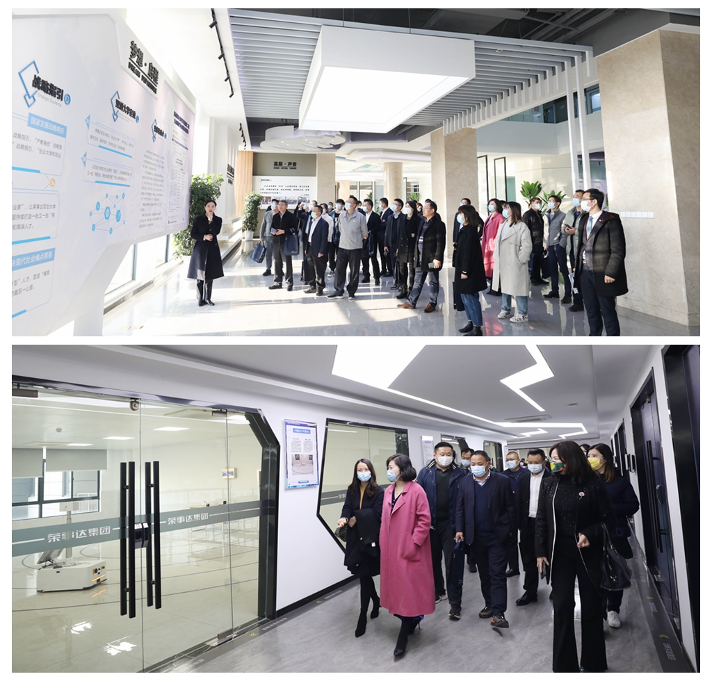 在荣事达双创大学,考察团详细了解了荣事达在产学研板块上的发展新成果,对荣事达坚持做好产学研工作,通过双创大学、科技创新平台实验室等,帮助企业提升研发技术、引进科研人才、提高科研成果转化率,表示了高度认可。