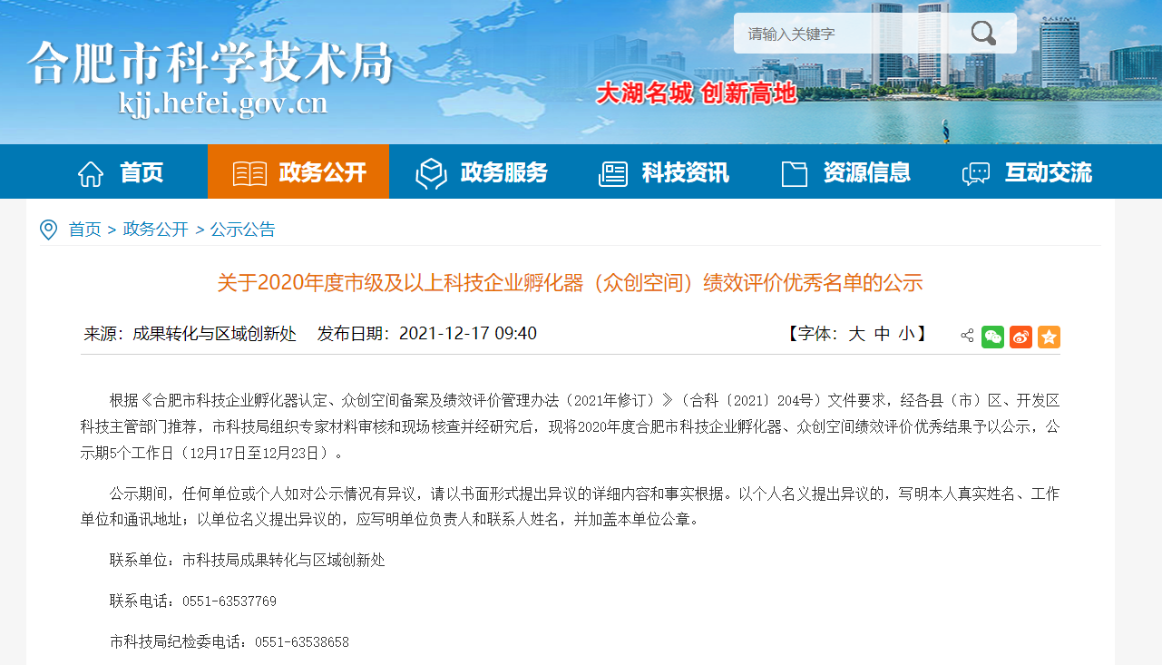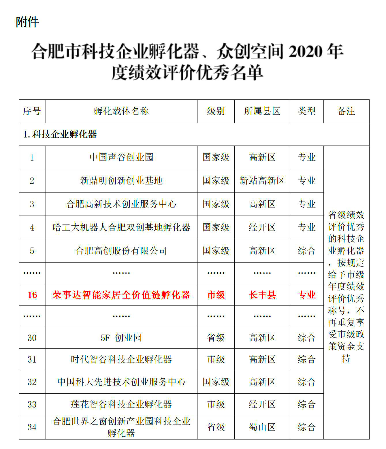 日前,合肥市科学技术局公示了《2020年度市级及以上科技企业孵化器(众创空间)绩效评价优秀名单》,荣事达集团旗下——荣事达智能家居全价值链孵化器,在本次评选中获评“优秀”等级。