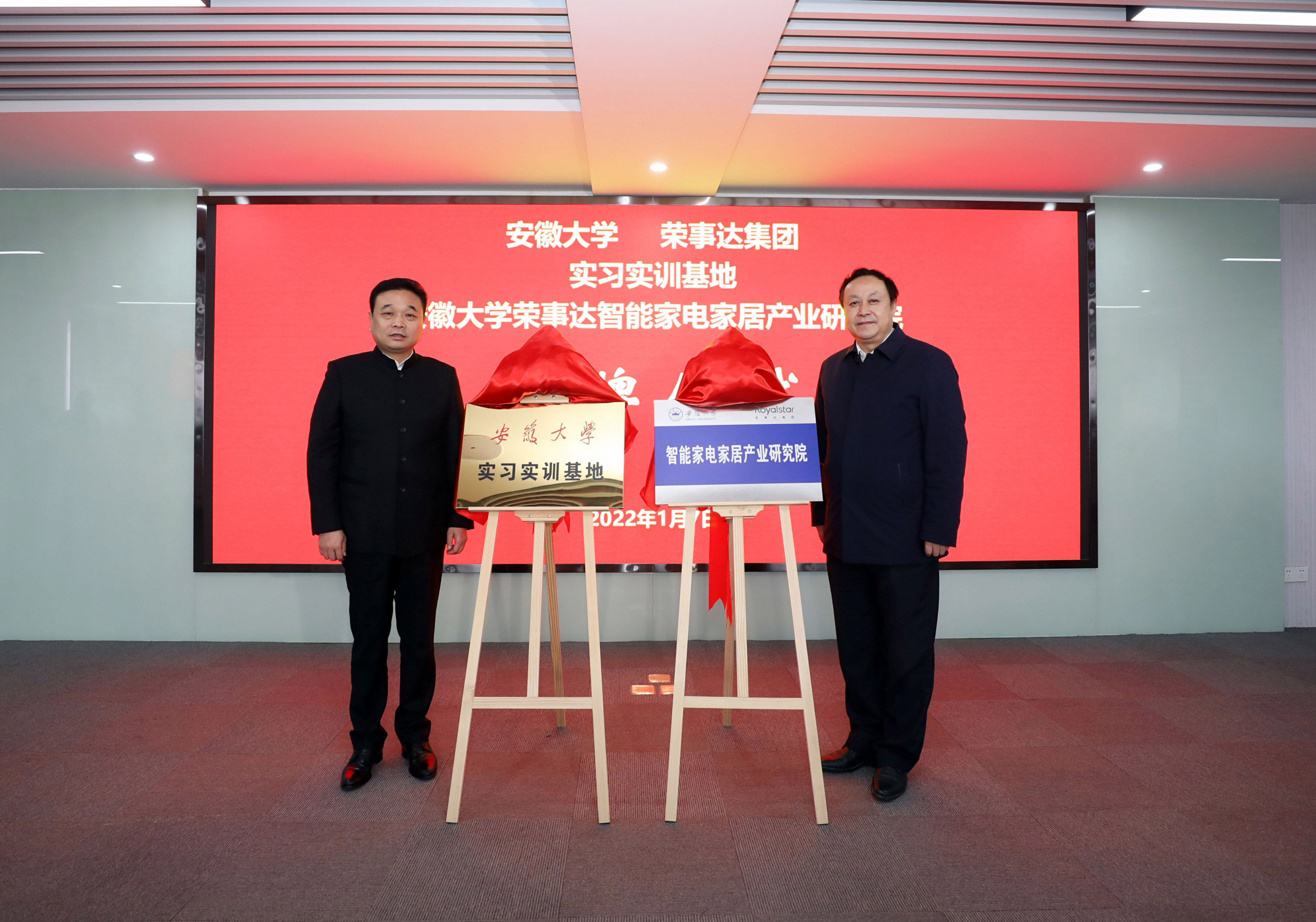 1月7日,安徽大学与荣事达集团战略合作签约仪式在荣事达双创大学隆重举行,“安徽大学荣事达智能家电家居产业研究院”和“安徽大学实习实训基地”正式揭牌,这是双方主动承担和践行安徽省委、省政府“双招双引”战略布局,推动全省智能家电家居产业链发展的重要行动。