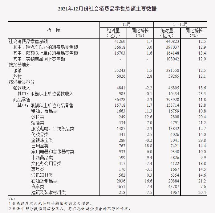 宏观方面,据国家统计局数据显示,2021年,我国国内生产总值比上年增长8.1%,经济增速在全球主要经济体中名列前茅;其中社会消费品零售总额44.1万亿元,比上年增长12.5%,比2019年增长8%。