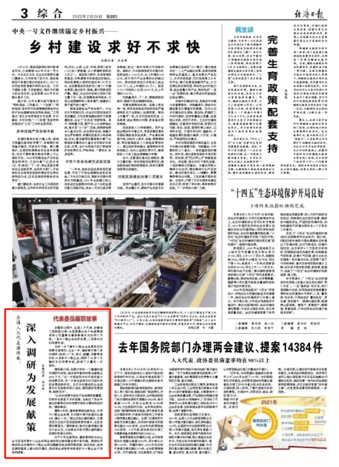 2月24日,经济日报数字报在《全国人大代表潘保春:深入调研为发展献策》专题中,报道了全国人大代表、安徽省工商联副主席、荣事达集团董事长潘保春通过深入调研,为中小微企业发展和净化农村消费市场建言献策的重要举措。