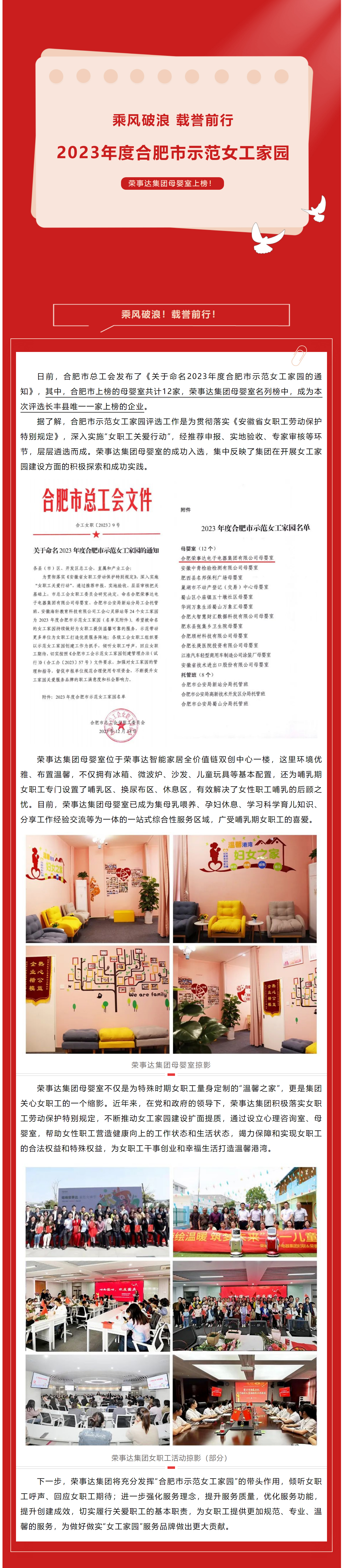 赞!荣事达母婴室获评“市示范女工家园”称号