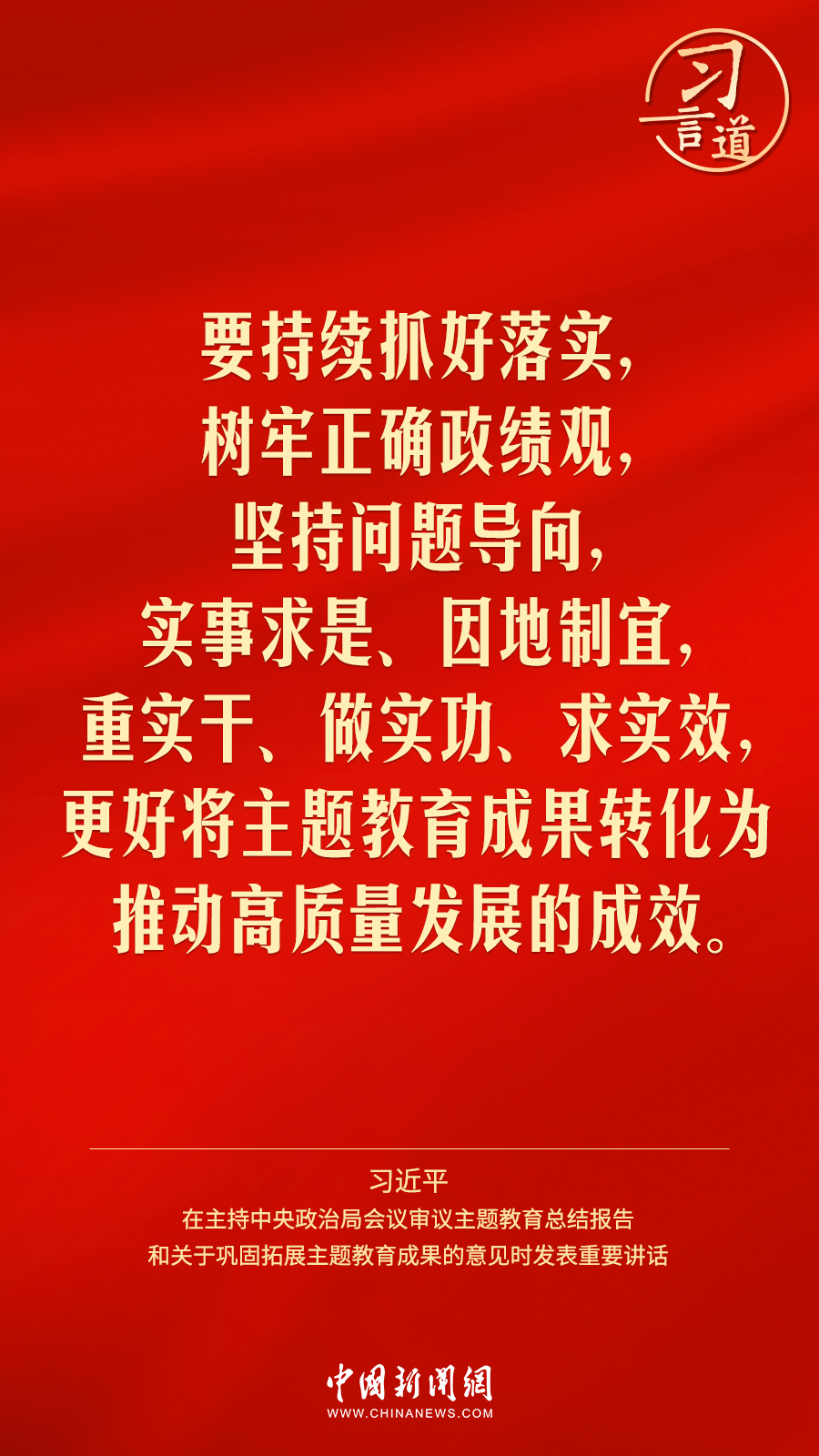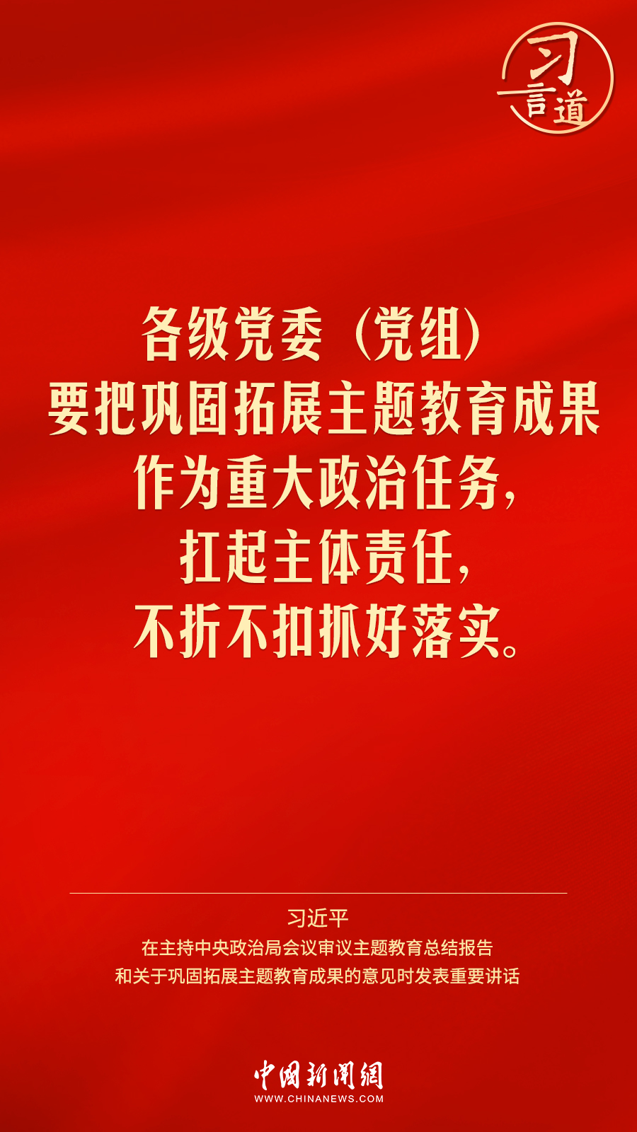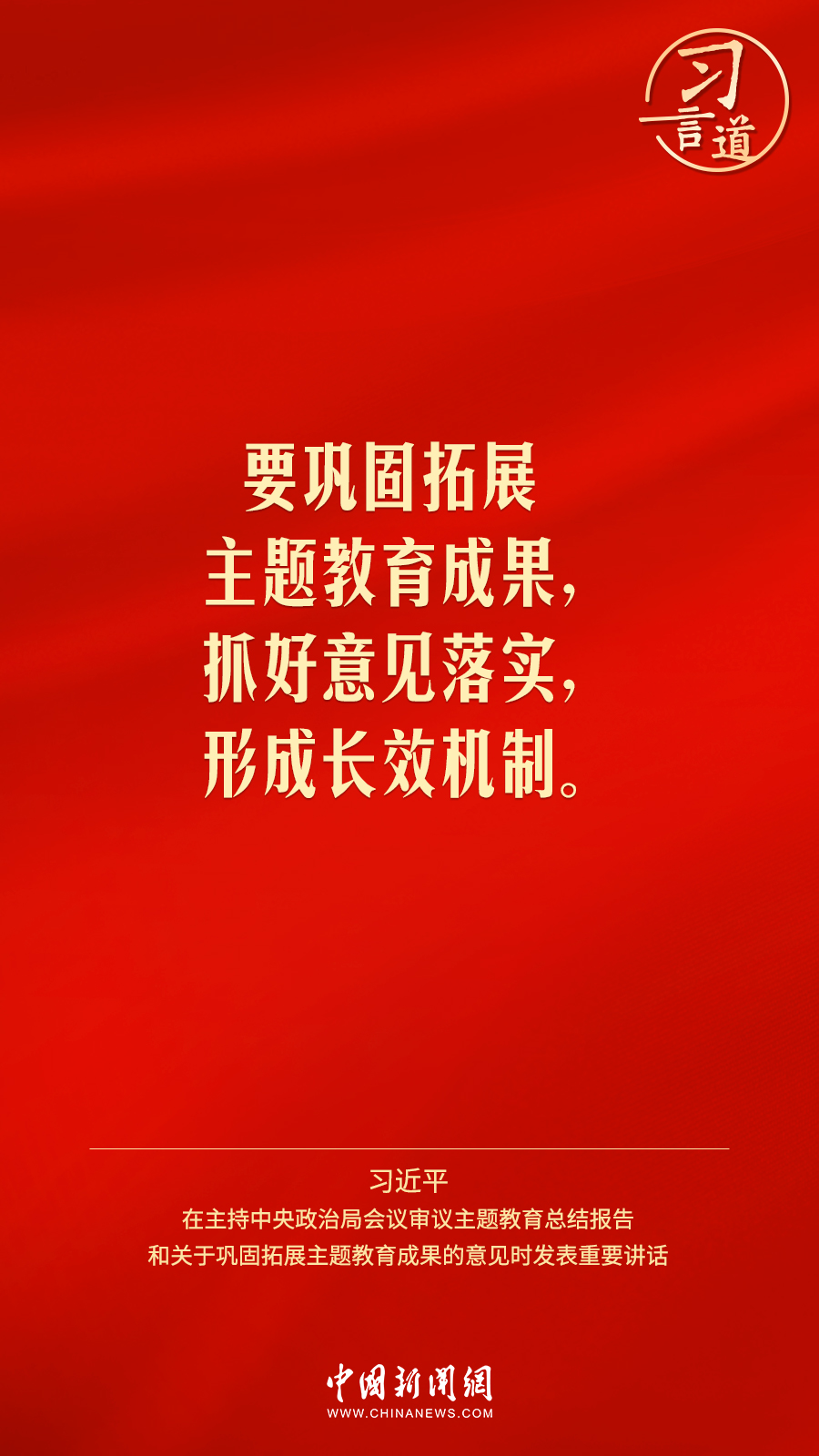 学习贯彻习近平新时代中国特色社会主义思想主题教育总结会议4日在京召开。日前,中共中央总书记、国家主席、中央军委主席习近平在主持中央政治局会议审议主题教育总结报告和关于巩固拓展主题教育成果的意见时发表了重要讲话。他强调——