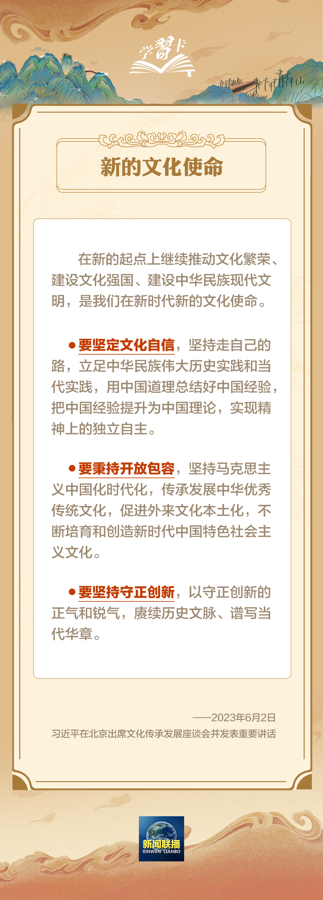 2023年6月2日,习近平总书记在北京出席文化传承发展座谈会并发表重要讲话。