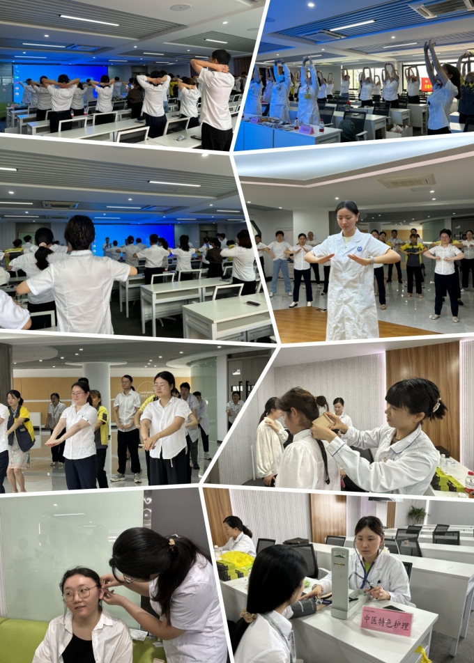 接下来的义诊现场人头攒动,热闹非凡,医务人员带领职工们学做颈椎操和五禽戏,普及科学健康的养生锻炼方式。安徽中医药大学精心设置了8个义诊窗口,涵盖骨科、妇科、脑病科等多个专业领域,全方位满足职工们的健康需求。现场开展的专业健康问诊、针灸、推拿、刮痧、耳穴埋豆、拔罐等中医特色技术更是“及时雨”,不仅解决了职工们的健康困扰,更是让大家亲身体验到了中医技术在治疗、预防、保健、养生等方面的效果。