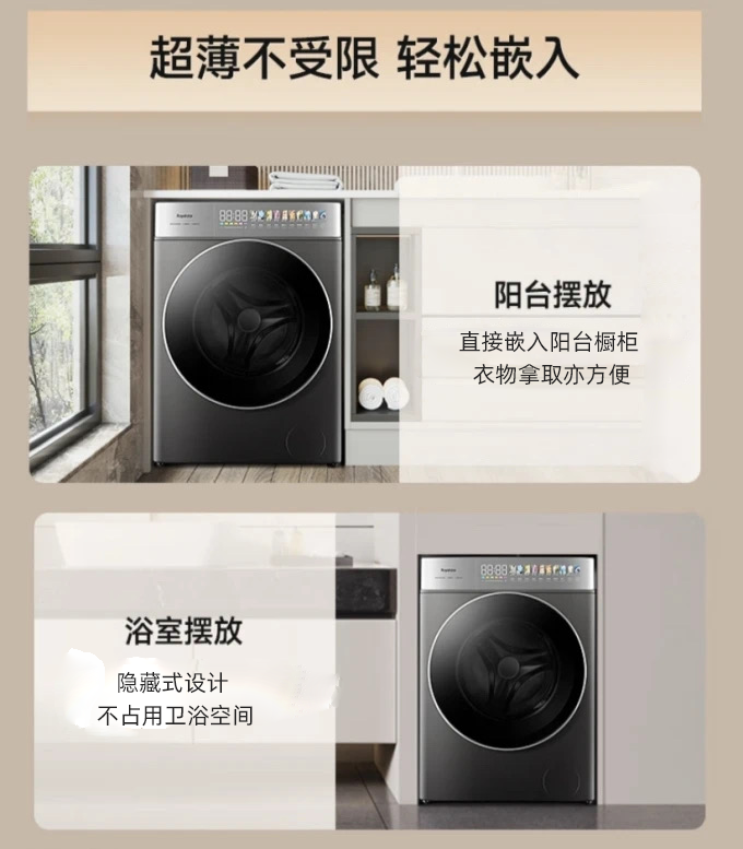 在崇尚简约设计的当下,荣事达大薄系列滚筒洗衣机(XQG120-18DQ)采用“超薄平嵌”一体式设计方案,成功引领一体化家居美学新趋势。在尺寸上,大薄系列滚筒洗衣机拥有纤薄机身,契合不突出,不做“显眼包”。无论是常规摆放还是嵌入设计,都让家庭空间更加精致和谐。但薄机身并不意味着小容量,这款产品的常规洗涤容量完全可以满足普通家庭的洗涤需求。