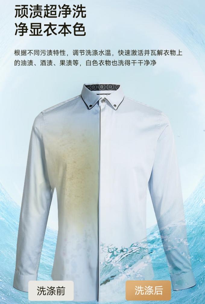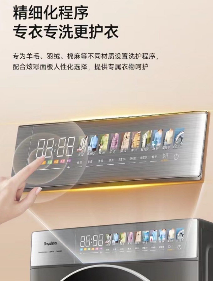 此外,荣事达大薄系列滚筒洗衣机(XQG120-18DQ)还配置了精细化洗衣程序,为羊毛、羽绒、棉麻等不同材质设置洗护程序,专衣专洗更护衣,让您的爱衣也能享受高端“SPA”。不仅如此,它拥有的顽渍超净洗模式,能够轻松应对油渍、汗渍等顽固污渍的挑战。根据不同污渍的特性,智能调节洗涤水温,快速激活并瓦解衣物上的油渍、酒渍、果渍等,让您的衣物洁净如新。