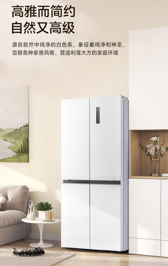 对于现代家庭而言,冰箱正在成为厨房里烹饪中心之外的食材存储中心,并逐渐占据厨房空间中的C位。因此,除了保鲜需求之外,冰箱的颜值也变得格外重要。荣事达大白系列智控养鲜冰箱(BCD-418WCGP)选用源自自然中的纯净白色系,百搭各种家居风格。外观精选白瓷釉钢化玻璃面板,匠心雕琢,将现代科技与艺术巅峰融合。四面一色设计,美感和谐,拓宽了家庭生活场景的更多可能。