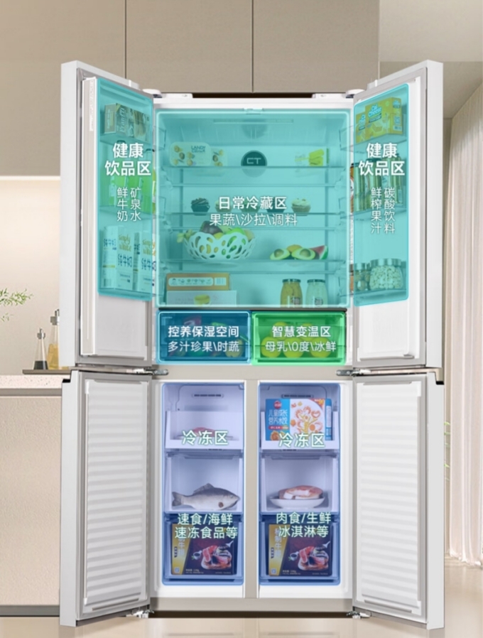 在空间利用上,荣事达大白系列智控养鲜冰箱(BCD-418WCGP)同样展现出了非凡的智慧。内部容量可轻松满足多口之家储鲜需求,18格精细分区,极大提升空间使用效率。合理的功能分区,让冰箱成为你的百宝箱,各种美食都能被精心存储。