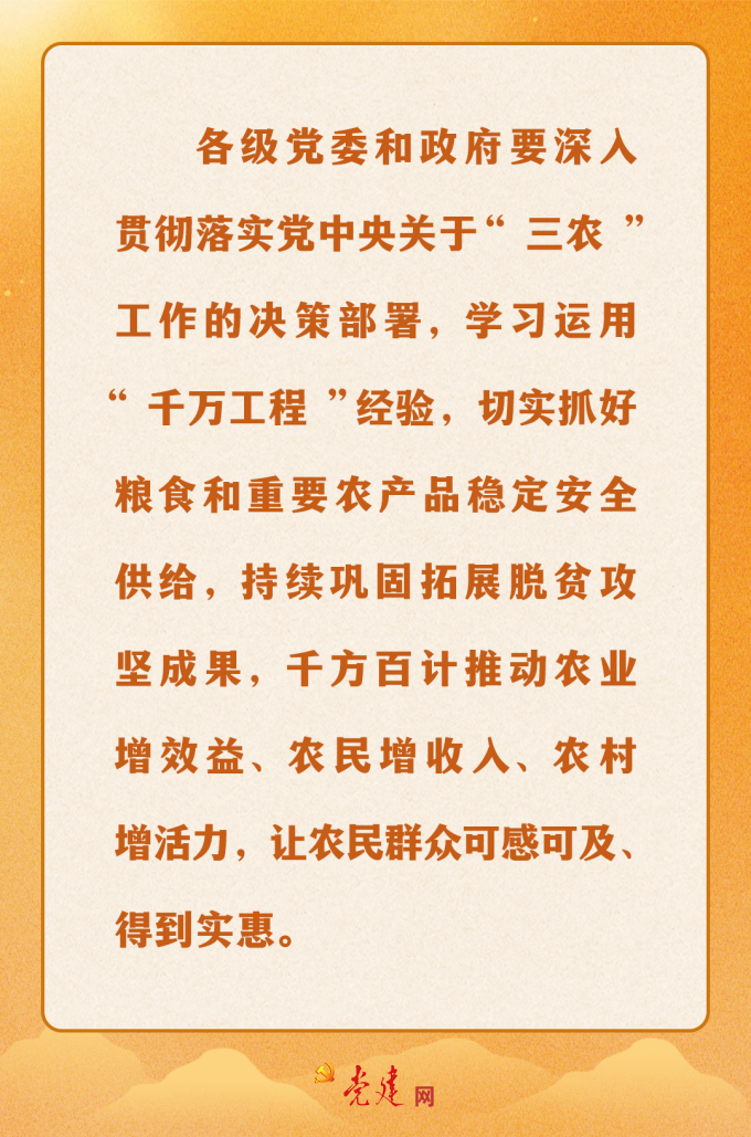 在第七个“中国农民丰收节”到来之际,习近平总书记向全国广大农民和工作在“三农”战线上的同志们致以节日祝贺和诚挚问候,强调千方百计推动农业增效益、农民增收入、农村增活力,让农民群众可感可及、得到实惠。快来一图学习总书记对“三农”工作的深情寄语!
