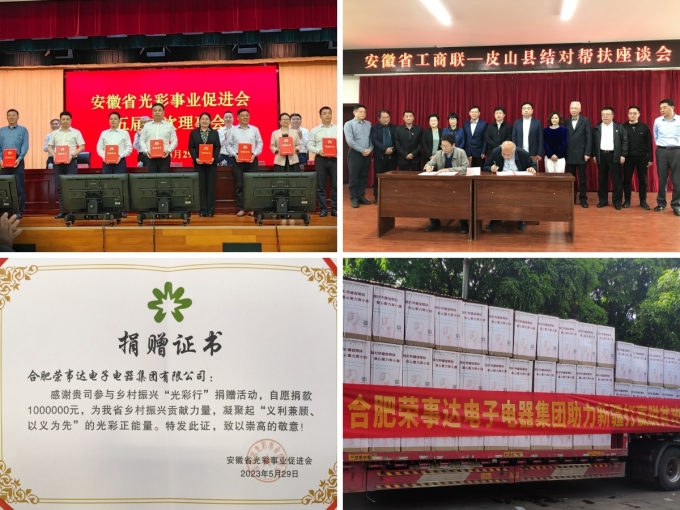 荣事达集团一直全力支持国家乡村振兴战略,积极履行社会责任、彰显时代担当。在安徽省工商联的带领下,荣事达集团积极参与新疆、西藏、广西等地的乡村振兴活动,通过特色产业帮扶、就业帮扶、消费帮扶等一系列措施,走好荣事达特色帮扶之路;同时,集团还积极参与乡村振兴“光彩行”活动,持续以捐款捐物结对等实际行动支持国家乡村振兴战略,践行社会责任……荣事达集团以实际行动践行社会责任,初心如磐、步履不停。