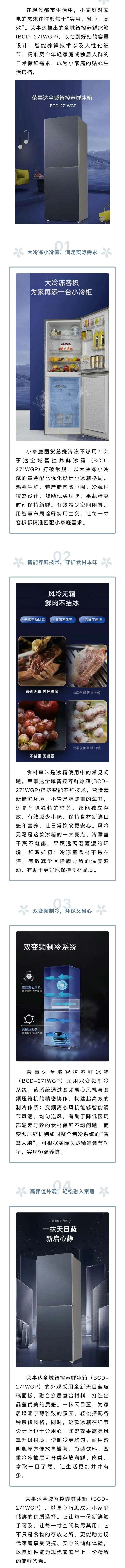 精品 | 荣事达BCD-271WGP冰箱:满足小家庭的精致储鲜需求
