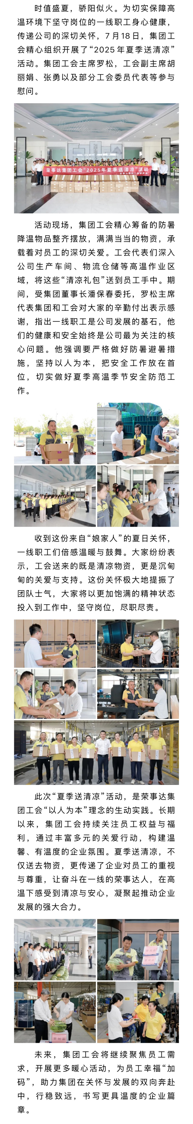 战高温・送清凉:荣事达工会把关爱送到一线