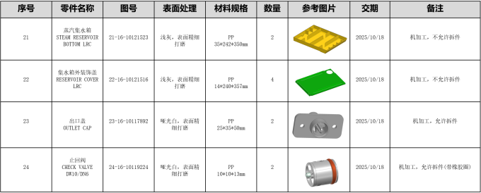 1.项目名称:衣物护理机新增零部件手板件制作