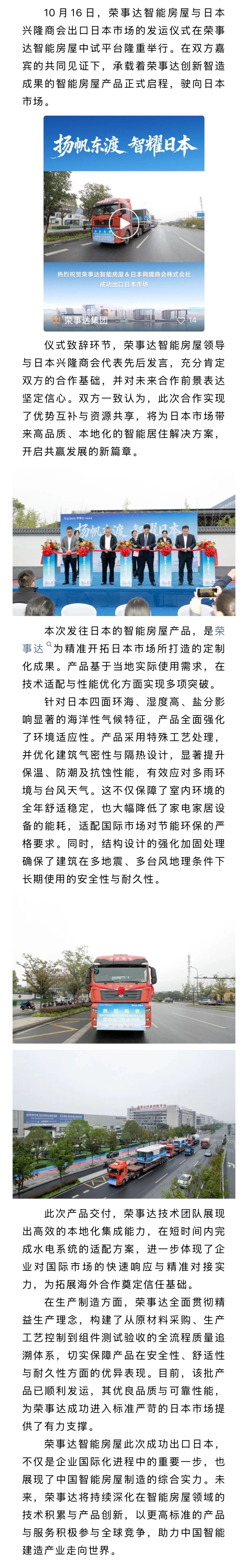 定制化适配+全流程品控!荣事达智能房屋成功出口日本