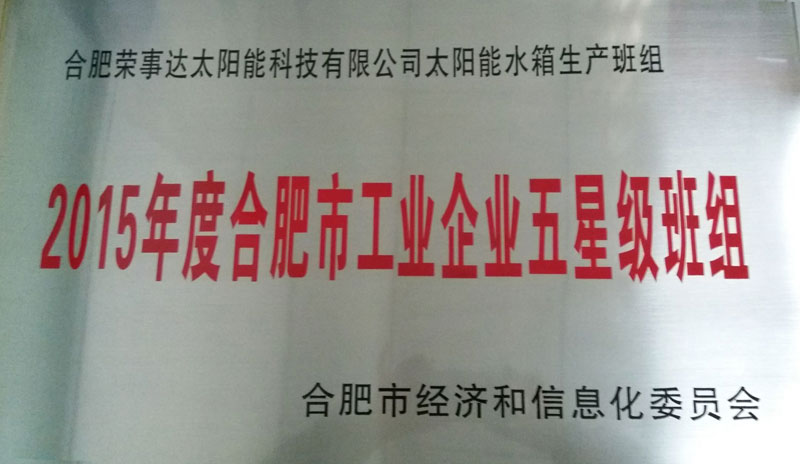 1月初,安徽省合肥市经济和信息化委员会公布了“2015年度合肥市工业企业星级班组”最终榜单,其中,荣事达太阳能水箱生产班组、江淮汽车汽油机三厂总装车间热试班、合凯电气过电压生产班组等企业班组均荣获“2015年度合肥市工业企业五星级班组”荣誉称号。