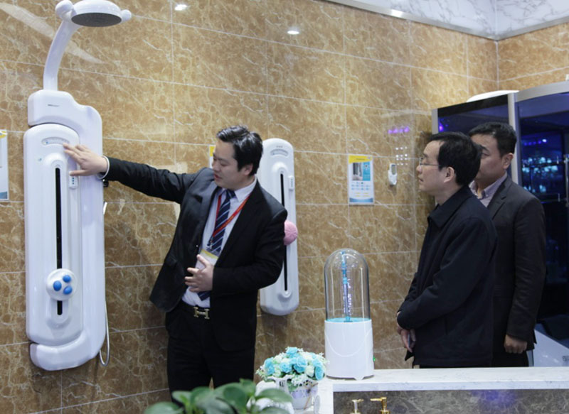 清洁舒适的智能洁身器、功能齐全的智能卫浴、安全环保的智热地板、含密码指纹解锁功能实现远程控制的智能门锁、采用的宝马触控技术的集成橱柜、自带蓝牙设备的新式集成吊顶、兼备远程遥控和紫外线杀菌功能的晾衣设备……各式智能科技潮品,让考察团一行赞不绝口。