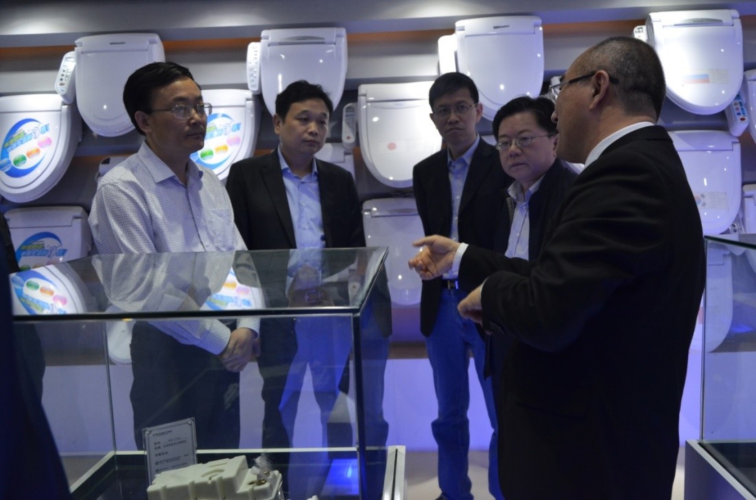 在座谈过程中,潘保春董事长向调研团做了智能洁身器项目专项报告。报告中对智能坐便器的基本情况、中日智能坐便器产品比较、中国品牌在各项技术参数等方面都做了精确数据说明,数据显示中国品牌在各项技术参数方面完全赶超国外品牌,而且在产品水泵增压、水质净化方面,中国品牌的产品更适合中国使用国情。