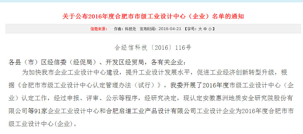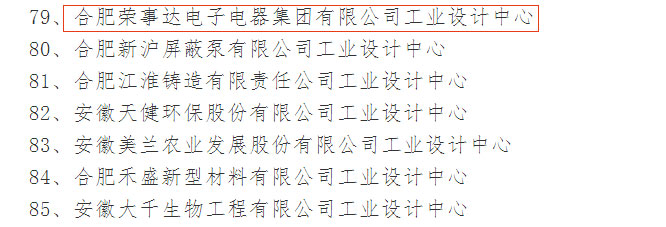 日前,合肥市经济和信息化委员会公示了2016年度市级工业设计中心(企业)名单,经过申报、评审、公示等程序,认定包括合肥荣事达电子电器集团有限公司等91家企业工业设计中心为2016年度合肥市市级工业设计中心,安徽江淮专用汽车、安徽四创电子等多家企业共同入选。