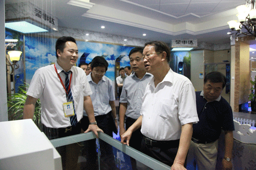 在智能厨卫展厅,看到荣事达触摸式全自动厨柜和自带菜谱的抽油烟机时,他风趣地说:你们搞得这样先进,把人培养得越来越懒了。潘保春董事长则说:我们的目标,就是要打造懒人厨房,把人从繁重的家务劳作中解放出来。得知荣事达智能家居防盗系统可变事后追踪为事前防御、小偷无论从门还是窗户都不得入时,他感慨地说:潘保春董事长用实践践行了双创,不容易啊!荣事达智能家居产品越来越多、越来越新颖,也越来越智能。