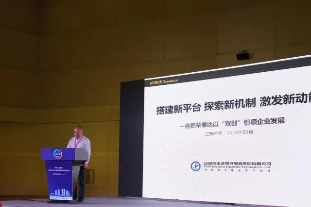 荣事达电子电器集团常务副总裁马睿现场发表《搭建新平台 探索新机制 激发新动能》——合肥荣事达以“双创”引领企业发展的主题演讲。演讲总结了荣事达双创的具体举措和经验,以技术创新为基础,将家电、建材和新能源进行智能化升级,打造荣事达智能家居全屋系统;将创业项目分为创客期、创业期和成长期三个阶段,针对不同阶段的需求导入品牌、资金、信息、技术、文化、管理、人力资源、制造和市场等九大要素,进行相应资源扶持措施;搭建创客基地、创客金融、创客服务、创客实验室、创客学院、创客工厂六大平台,开放大企业优势资源;以“品牌、品类、品质”为主导的“三品基金”,扶持创业项目;通过“品质评估、市场评估、财务评估”三大评估体系,全程为双创项目保驾护航;荣事达“双创中心-合伙人制-事业部制”三位一体,通过利益满足、价值实现、思想引领和工具提供,加快了创业项目发展步伐。通过机制、体制创新实践,荣事达“双创”中心已成为了一个良性的、符合企业成长规律的生态环境,形成了独特的荣事达双创模式。荣事达通过技术创新加快了新技术的引进,打造了具有自主知识产权的智能家居控制系统,实现了从创造产品到创造企业、创造企业家的质的飞跃。