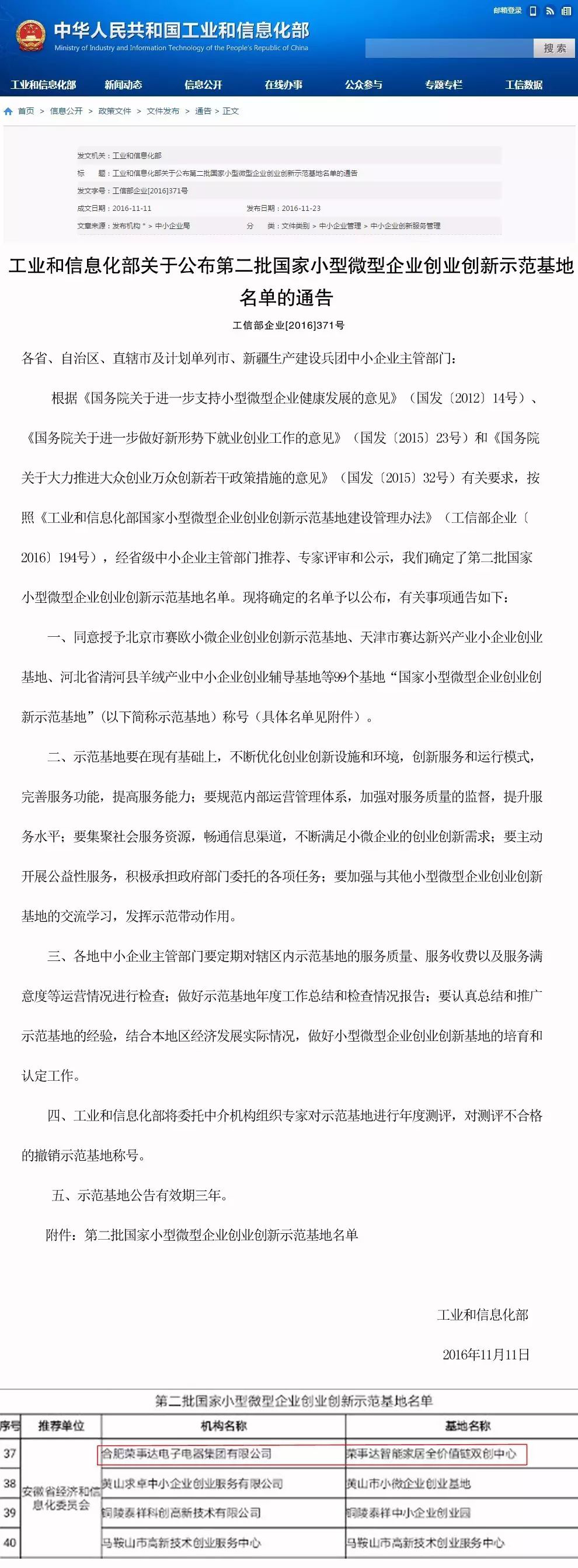 ↑↑↑2016年11月11日工信部公布