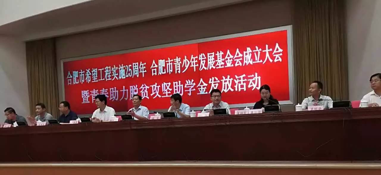 8月25日,在合肥市希望工程实施25周年之际,合肥市青少年发展基金会成立大会暨青春助力脱贫攻坚助学金发放活动隆重召开。合肥荣事达电子电器集团有限公司应邀出席大会。